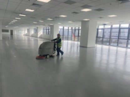 华铭保信开荒保洁团队正开展最终清洁作业,重点针对墙面、地面、设备设施表面进行精细化清理,确保达到 “无灰尘、无污渍、无施工残留” 的交付标准。保洁验收通过后,建设单位将按计划搬入办公家具及设备,标志着项目正式从施工阶段转向运营筹备阶段。